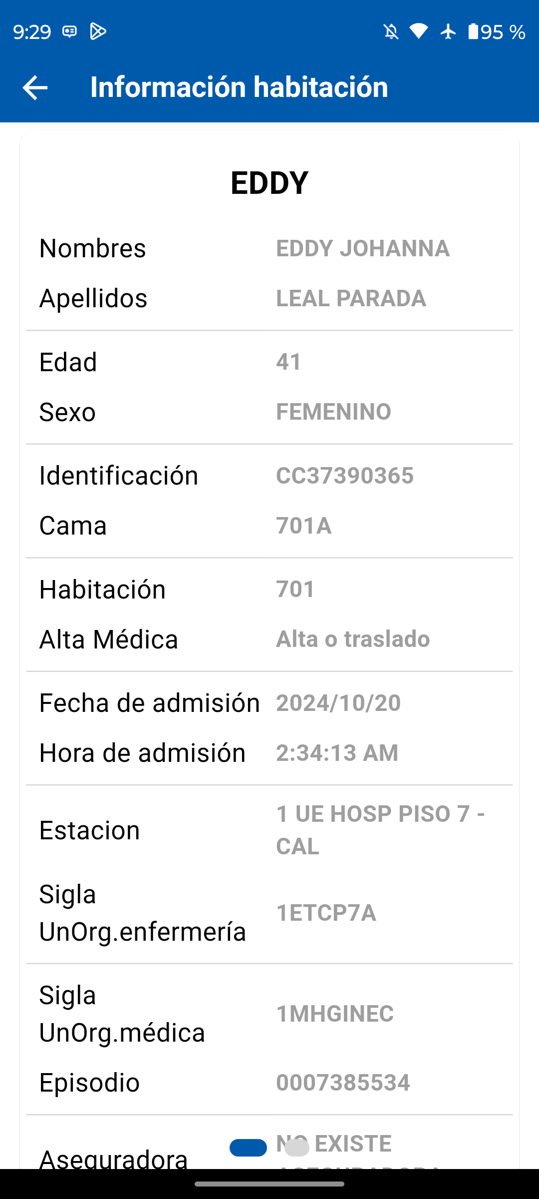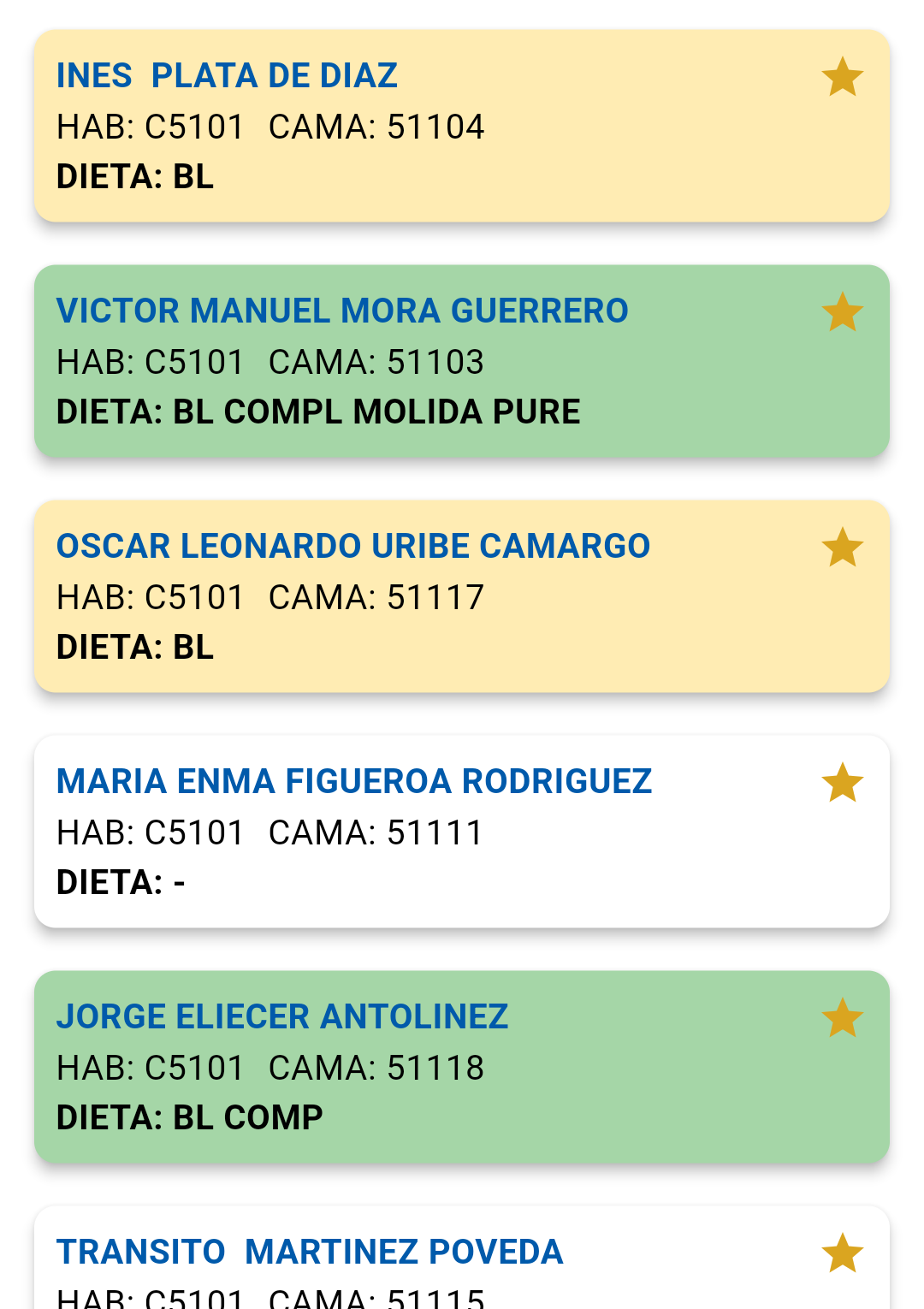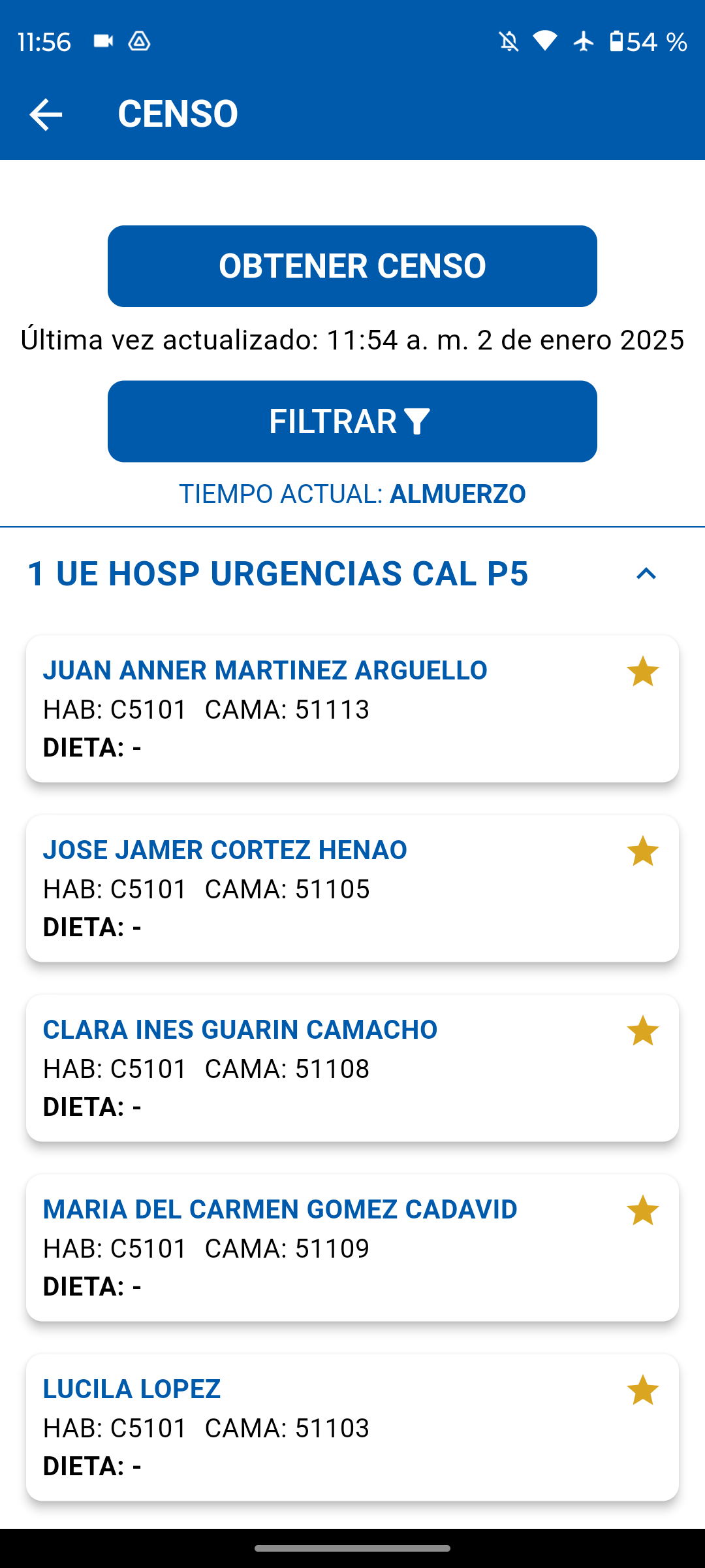 Al seleccionar el indicativo numérico que representa la estación médica, se desplegará el listado actualizado del censo.