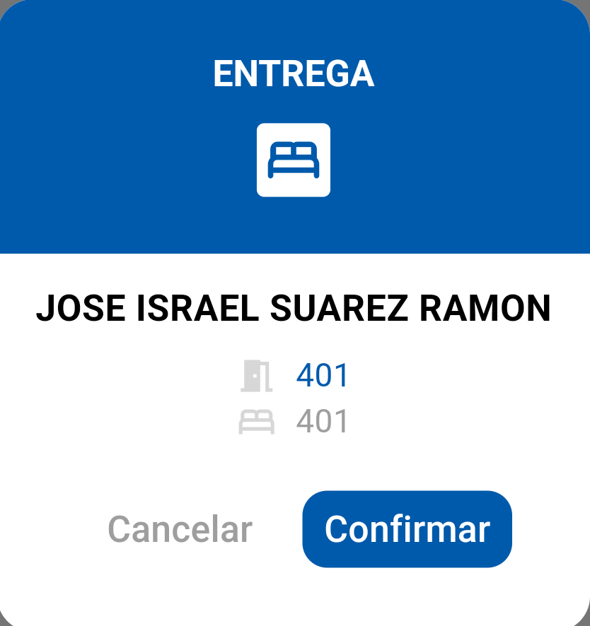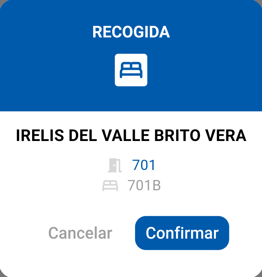1. Después de escribir el registro de la cama o escanear el código QR, podrás visualizar el ticket virtual previamente generado. Desde allí, podrás confirmar si deseas realizar alguna operación con este ticket, ya sea la entrega o recogida del plato (Si haz hecho la entrega previamente, te aparecerá "Recogida").
