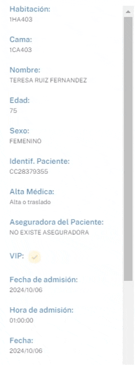 También podrá visualizar la siguiente información del paciente: