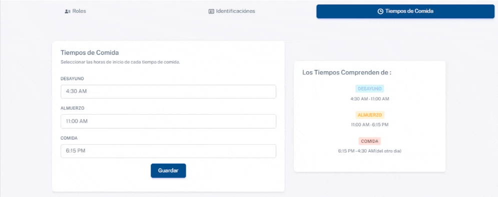 Esto te permitirá personalizar los tiempos para Desayuno, Almuerzo y