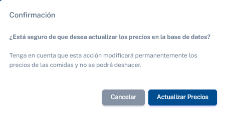 Campos del formulario:Los precios de la dieta se configuran por tipo de cliente (NO VIP y VIP) y por tipo de comida (desayuno, almuerzo y comida). A continuación, se detalla cada sección: