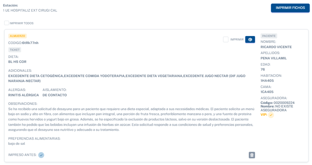 Imprimir: En esta sección, podrás imprimir los tickets generados para la distribución de alimentos a los pacientes.