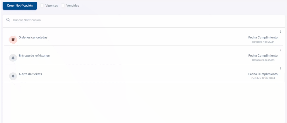 Notificaciones : En esta sección, tendrás la opción de configurar notificaciones para agregar recordatorios. Así podrás recordar temas importantes o funciones clave del proceso.