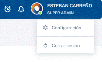 En esta sección se indicará el nombre y dependencia del usuario que se encuentra con la sesión activa. Si se realiza un clic, se desplegará el siguiente menú.